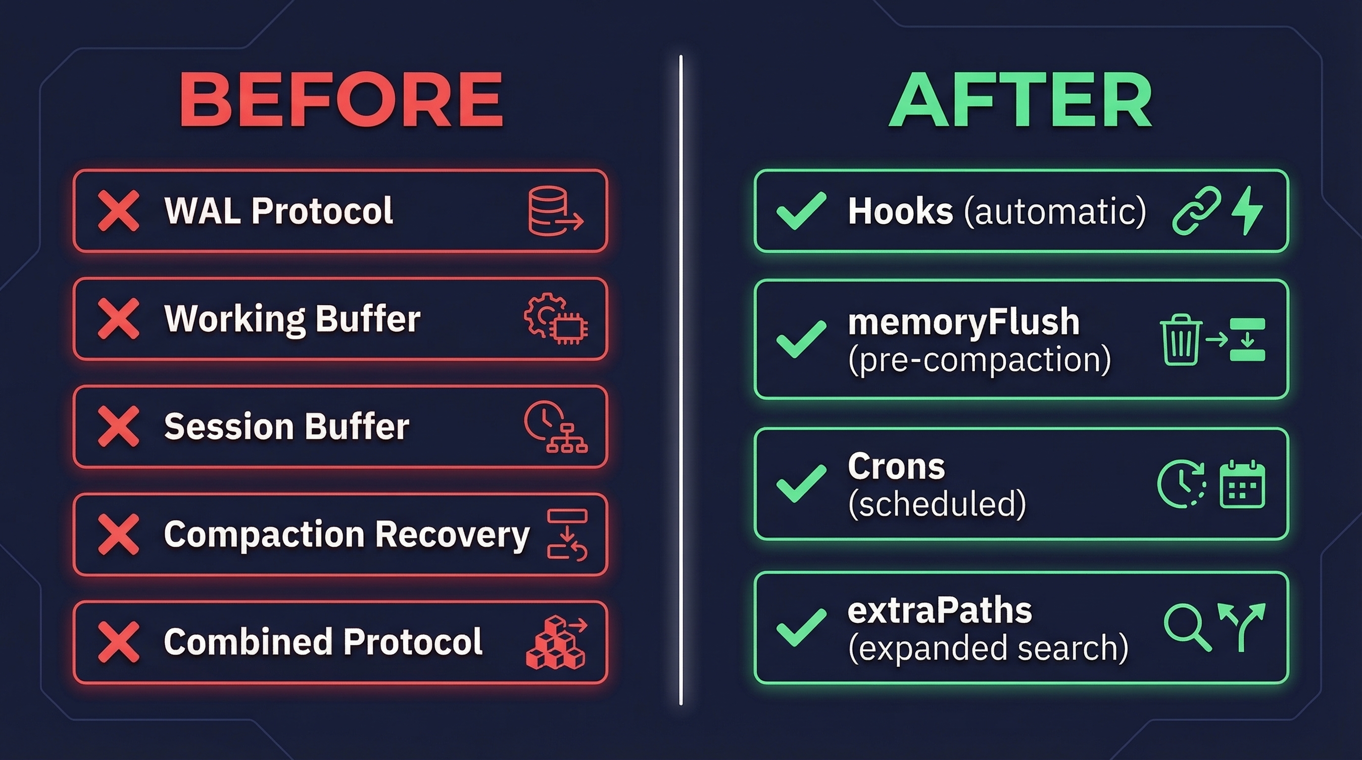 I spent 5 weeks trying to fix this. I tested 5 different memory protocols, each one more elaborate than the last. I even gave them fancy names: WAL. Working Buffer. Session Buffer. Compaction Recovery.